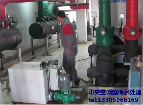 螺桿式冷水機冷凝器極易結(jié)垢,正常在夏季供冷期應該做日常水處理,否則在高硬度水質(zhì)的環(huán)境下運行,循環(huán)水系統(tǒng)內(nèi)溶于水中的無機鹽就會隨著溫度的升高結(jié)晶析出,在冷凝器換熱面管壁上形成水垢,導致熱交換效率降低。同時硬垢增加,則能耗上升,結(jié)硬質(zhì)水垢1mm厚時會增加6%—8%。 ![]() 1、將冷卻水進出冷凝器的閥門關緊,利用溫度計管、壓力表管或排污管連接防腐泵、配液箱做成小循環(huán)系統(tǒng),循環(huán)清洗。 2、先加入酸洗緩蝕劑,此藥劑為專用銅緩蝕劑,它附著在冷凝器金屬內(nèi)壁上,防止酸和金屬發(fā)生反應。 3、加入固體酸洗清洗劑,用于清洗碳酸鈣垢為主要成份的水垢,清洗劑是復合固體有機酸,白色晶體,對金屬的無腐蝕性,為弱酸;清洗劑用量按設備結(jié)垢量而定。 4、加入泥垢剝離劑(可選),如果冷凝器設備結(jié)垢較厚時,需要添加泥垢剝離劑,促進水垢反應后的生成物快速溶于水,加快深層水垢反應。 5、加入中和鈍化劑,在冷凝器進行化學清洗后,中化殘酸,防止金屬表面氧化而生成二次浮銹。 6、清洗工藝 清洗溫度:一般采用常溫清洗,如果結(jié)垢較厚可以在40—50℃清洗以提高清洗速度。 將進出機組的閥門關上,利用壓力表或溫度計管、防腐泵、酸液箱連成清洗循環(huán)系統(tǒng)。清洗時先加入緩蝕劑,緩蝕劑循環(huán)均勻后緩慢加入有機酸,清洗中應定時檢測反應情況,清洗劑不足時需補足,以保證有足夠的酸液和水垢反應,清洗中按水垢反應情況,可加入適量泥垢剝離劑、消泡劑等。 清洗結(jié)束后,要將余液排出,并加入清水沖洗。 冷凝器清洗后還需要加入中和鈍化劑,中和殘酸,以防止金屬內(nèi)壁氧化。 冷凝器清洗時間為5~10小時左右,按實際情況而定。 |