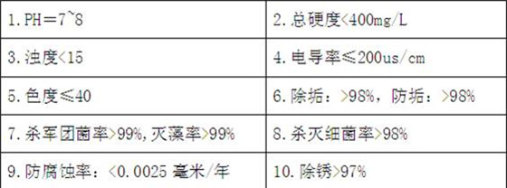 沒(méi)有裝水處理設(shè)備會(huì)引起管道堵塞、結(jié)垢、滋生生物粘泥、軟垢、腐蝕等問(wèn)題,必需安裝水處理設(shè)備才能有效的對(duì)空調(diào)水進(jìn)行殺菌滅藻、除垢、防腐蝕處理。以下參數(shù)為裝水處理器前后比較表: