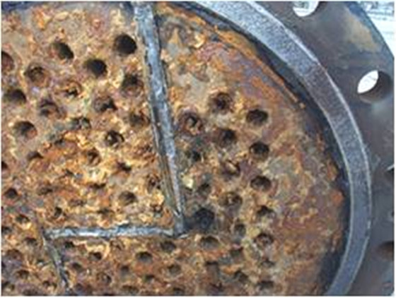 冷凝器腐蝕問(wèn)題 u 腐蝕形成原因: 腐蝕是指通過(guò)化學(xué)或電化學(xué)反應(yīng)使金屬被消耗破壞的現(xiàn)象。冷卻水中的溶解氧與設(shè)備接觸形成腐蝕電池,發(fā)生如下反應(yīng),促使金屬不斷溶解而被腐蝕。 u 腐蝕控制: 向循環(huán)水中投加較低量,適應(yīng)系統(tǒng)水質(zhì)的復(fù)合緩蝕劑,即能使設(shè)備腐蝕控制在標(biāo)準(zhǔn)規(guī)定范圍。對(duì)于碳鋼不銹鋼系統(tǒng),優(yōu)選阻垢緩蝕劑配方時(shí),即已復(fù)配入配方中,能解決設(shè)備腐蝕問(wèn)題,如果系統(tǒng)中有銅設(shè)備,則應(yīng)另添加緩蝕劑,如恒古HG-301系列。 |