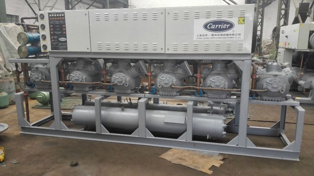 D、模塊化冷水機(jī)組 優(yōu)點(diǎn):1.系活塞式冷水機(jī)組和螺桿式冷水機(jī)組的改良型,它是由多個(gè)冷水單元組合而成2.機(jī)組體積小,重量輕,高度低,占地小3.安裝簡(jiǎn)單,無需預(yù)留安裝孔洞,現(xiàn)場(chǎng)組合方便,特別適用于改造工程 缺點(diǎn): 1.價(jià)格較貴2.模塊片數(shù)一般不宜超過8片